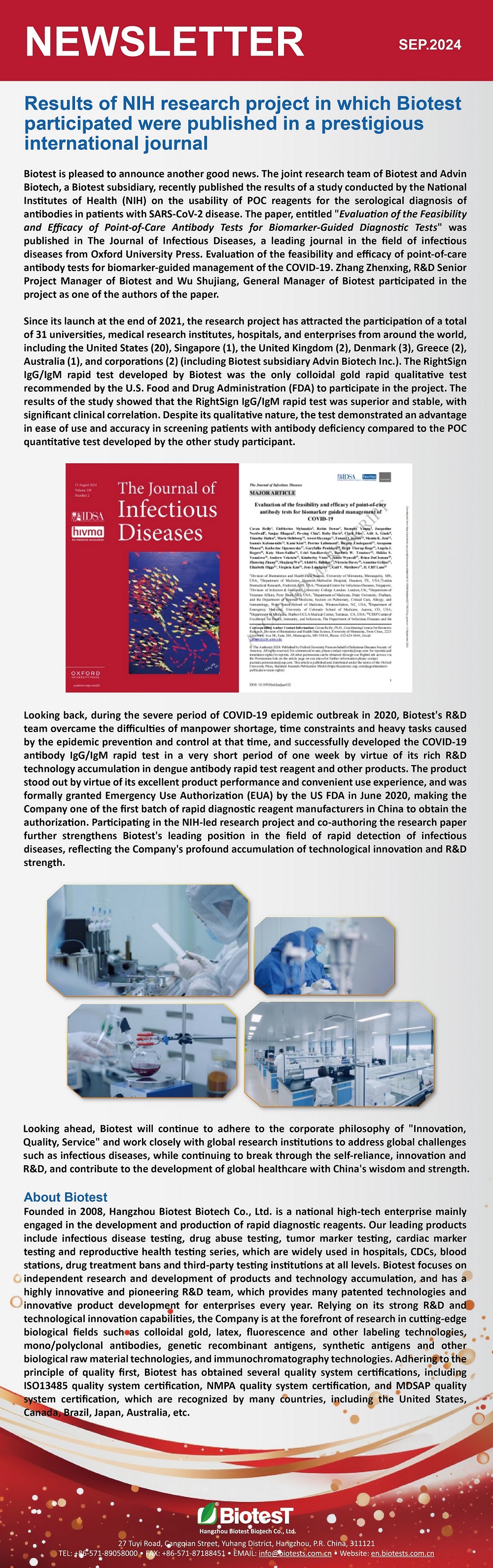 Results of NIH research project in which Biotest participated were published in a prestigious international journal
