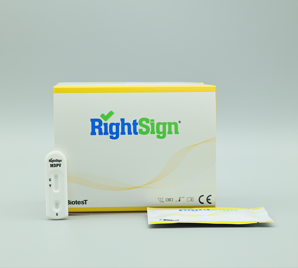 The MDPV Rapid Test is a rapid chromatographic immunoassay for the detection of 3,4–methylenedioxypyrovalerone in urine