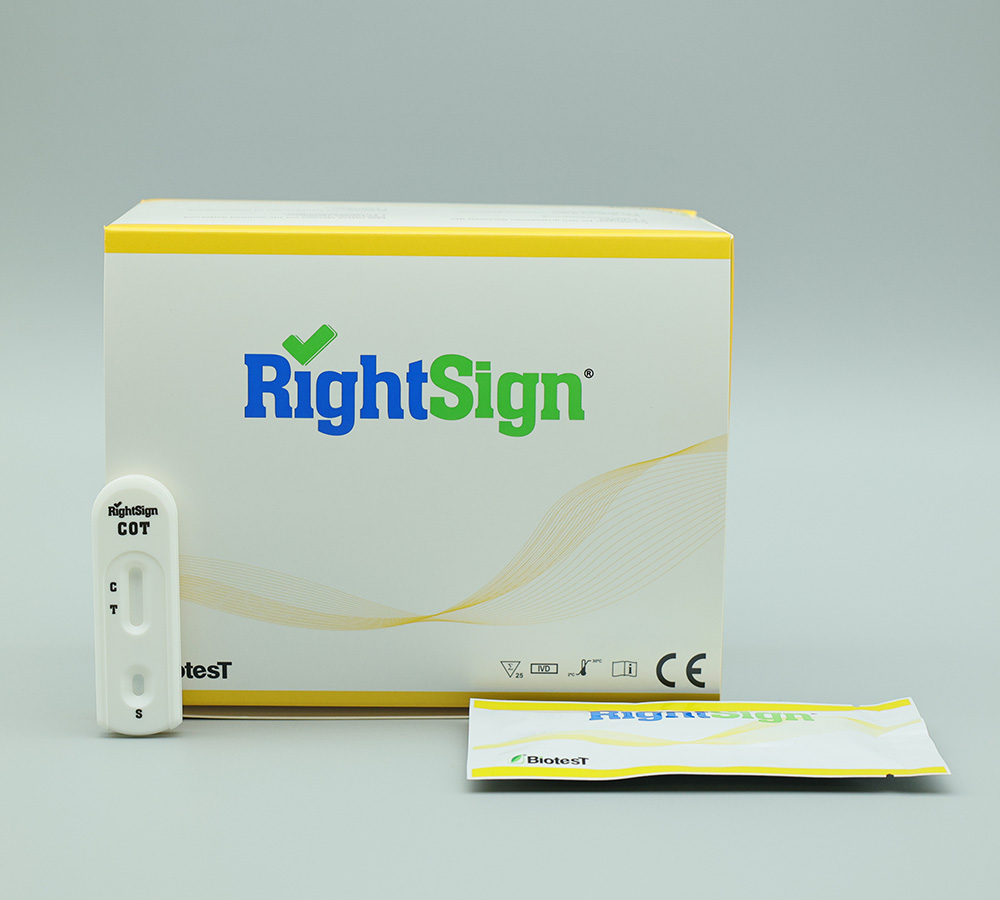 La prueba rápida COT es un inmunoensayo cromatográfico rápido para la detección de cotinina en orina/saliva