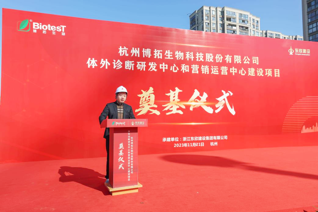 在奠基仪式上,公司董事陈宇杰先生发表了重要致辞,对项目的基本情况以及整体规划设计进行了介绍,并对所有参与此项工程的人员表示了感谢。博拓生物作为浙江省2023年度第一批“专精特新”企业,自成立以来一直秉承着技术创新和客户至上的理念,始终专注于体外诊断(IVD)领域,致力于研发、生产和销售高质量的POCT诊断试剂产品。经过多年的发展,公司凭借先进的技术和优质的产品及服务赢得了客户广泛信赖,成为了我国POCT行业的领军企业之一。