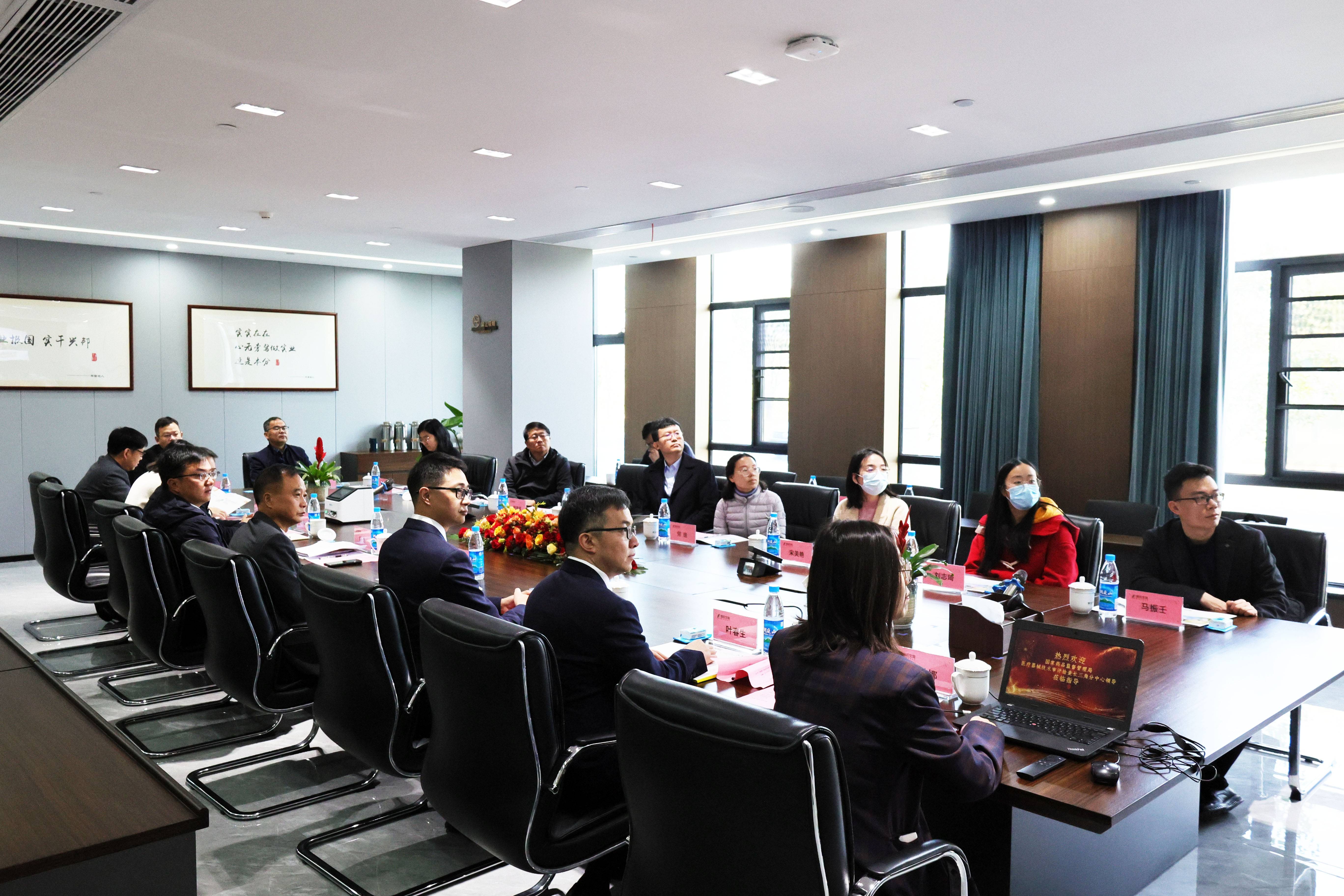 2024年3月19日上午,国家药品监督管理局医疗器械技术审评检查长三角分中心李耀华主任一行,在浙江省药监局张海军总监等省市区监管部门有关负责人陪同下,莅临博拓生物进行实地考察与调研活动。余杭区政府相关领导也参加了走访。博拓生物董事长陈音龙、总经理吴淑江携各部门相关负责人热情接待了来访团队。