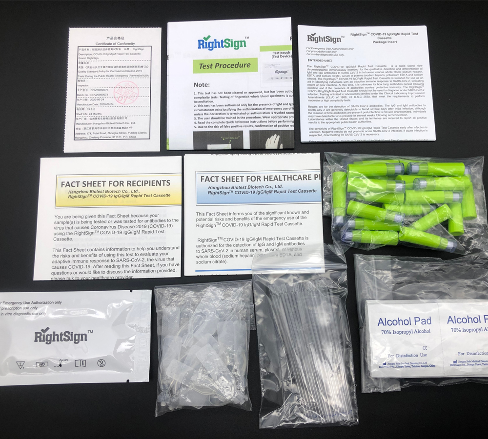 RightSign COVID-19 IgG/IgM Rapid Test Cassette(EUA Fingerstick Blood)