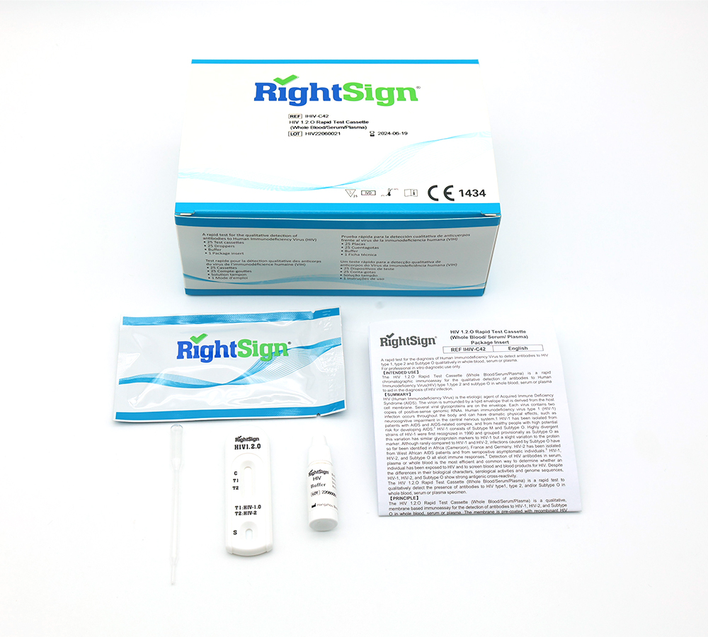 The HIV 1.2.O Rapid Test Cassette (Whole Blood/Serum/Plasma) is a rapid chromatographic immunoassay for the qualitative detection of antibodies to Human Immunodeficiency Virus(HIV) type 1,type 2 and subtype O in whole blood, serum or plasma to aid in the diagnosis of HIV infection.