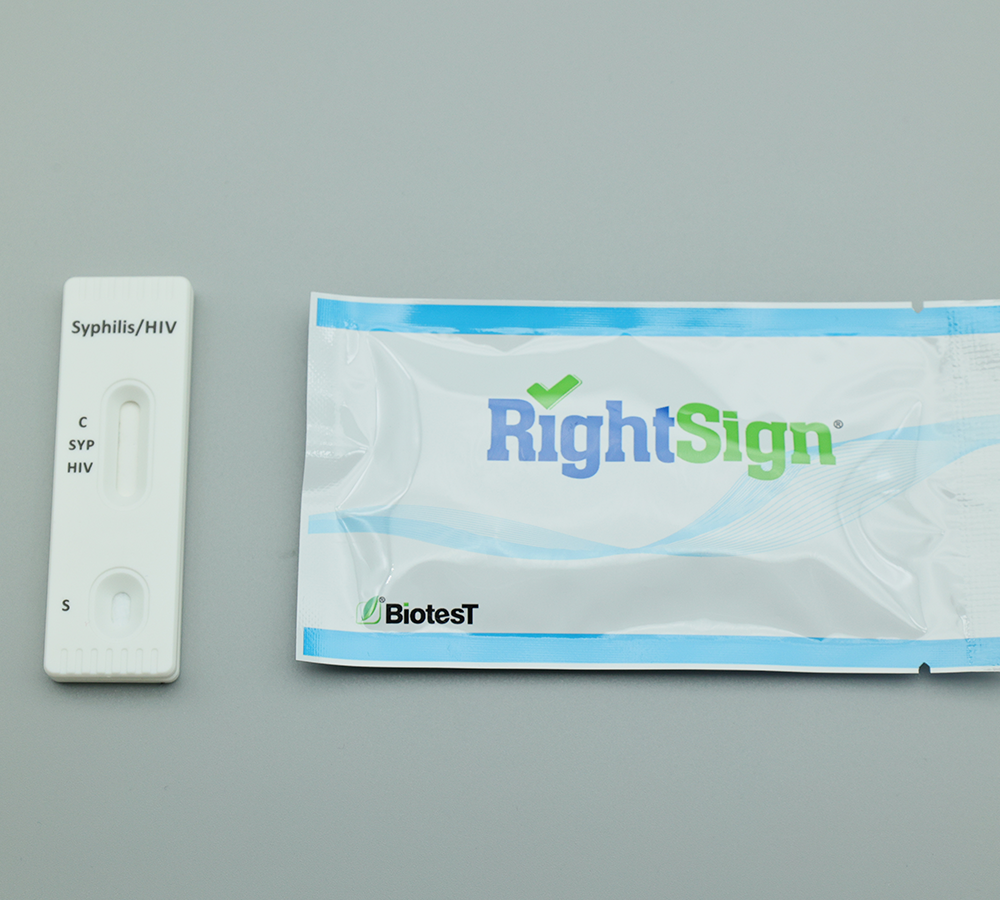 A rapid test for the qualitative detection of antibodies to HIV type 1, type 2 and syphilis antibodies (IgG and IgM) to Treponema Pallidum (TP) in whole blood, serum or plasma.