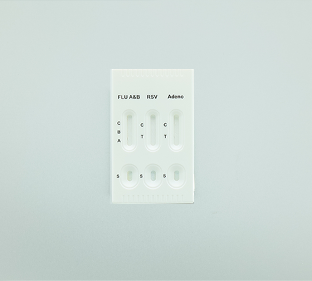 A rapid test for the qualitative detection of Influenza A&B,Respiratory Syncytial Virus (RSV), Adenovirus antigen in Nasal swab, Nasopharyngeal swab and Pharyngeal swab.