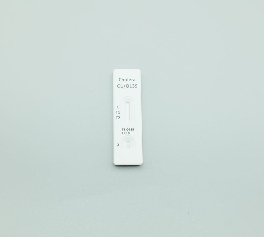 A rapid test for the qualitative detection of Vibrio Cholera O1 and O139 in feces.