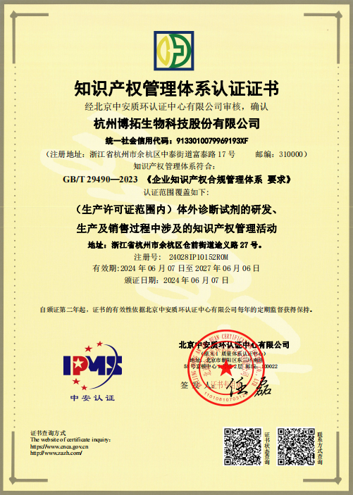 博拓产品覆盖医学检验的多个领域,拥有传染病检测、药物滥用(毒品)检测、肿瘤标志物检测、心肌标志物检测和生殖健康检测等五大系列,在各级医院、疾控中心、血站、禁戒毒和第三方检验机构广泛使用。公司已通过德国TUV ISO13485质量体系认证,多项产品拥有中国NMPA注册、欧盟CE认证和美国FDA 510(k)证书。