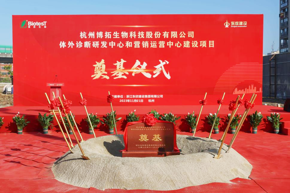 2023年11月21日上午,博拓生物体外诊断研发中心和营销运营中心建设项目的奠基仪式在中泰街道隆重举行。公司董事长陈音龙,董事陈宇杰,以及公司各部门相关负责人共同参加了本次仪式。同时莅临奠基仪式的嘉宾还有中泰街道相关工作领导。这个项目的启动,标志着博拓生物在不断发展的道路上又迈出了重要的一步,开启公司发展的新篇章。