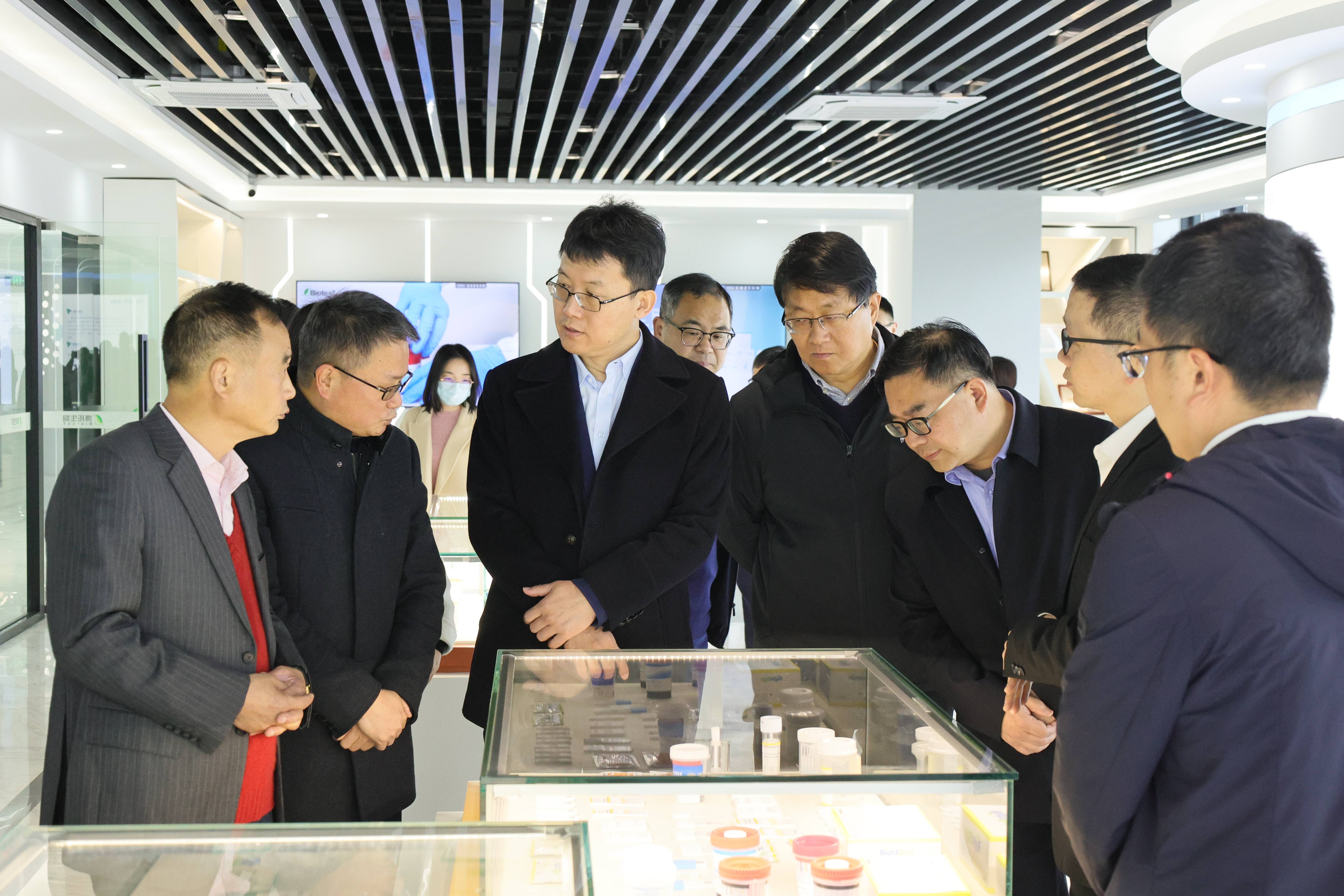 2024年3月19日上午,国家药品监督管理局医疗器械技术审评检查长三角分中心李耀华主任一行,在浙江省药监局张海军总监等省市区监管部门有关负责人陪同下,莅临博拓生物进行实地考察与调研活动。余杭区政府相关领导也参加了走访。博拓生物董事长陈音龙、总经理吴淑江携各部门相关负责人热情接待了来访团队。