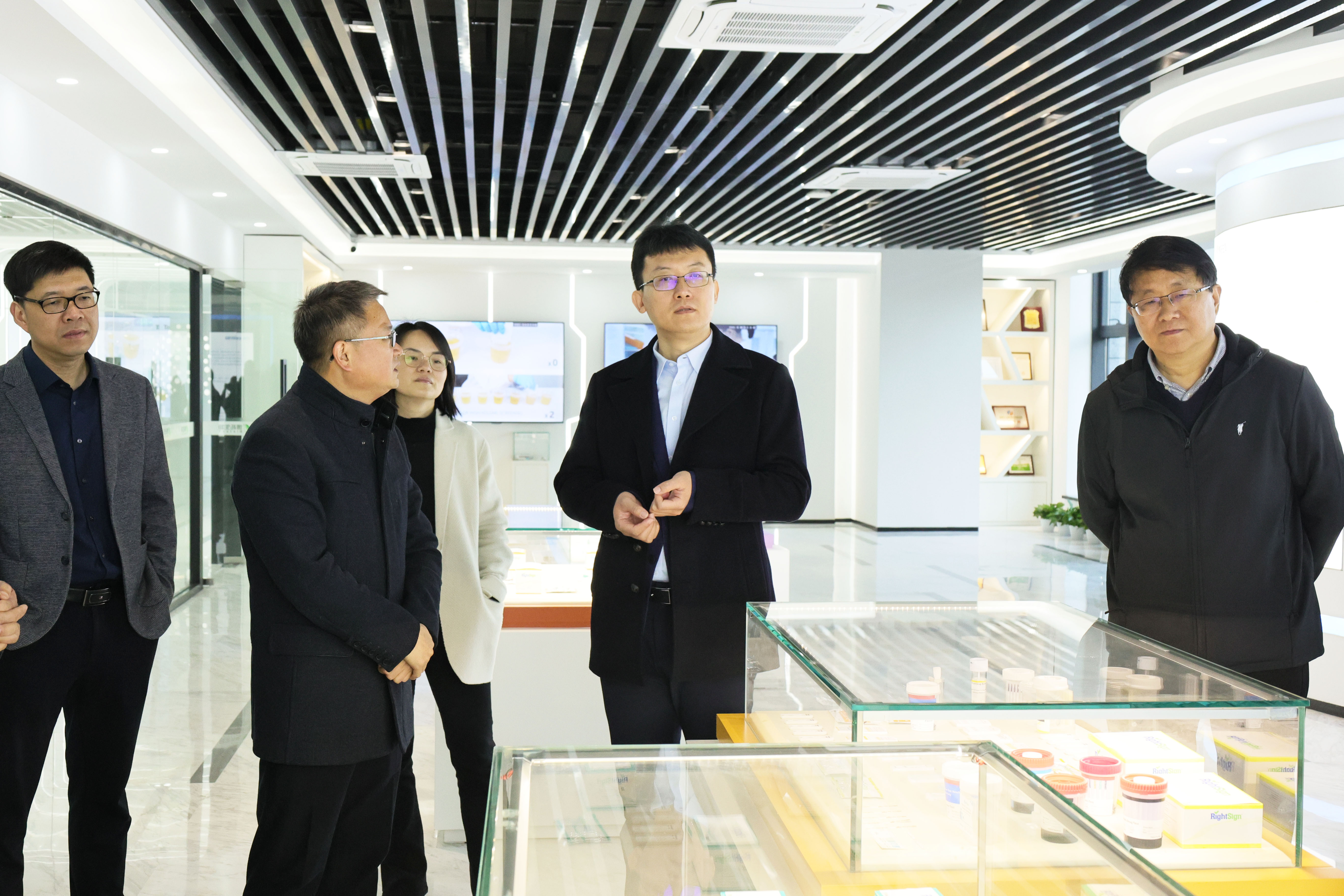 李主任一行实地参观了博拓生物的产品展厅及生产办公大楼,全面了解了博拓生物产品在国内外市场的广泛应用情况以及注册报批等相关事宜。在紧随其后的交流答疑会议上,李主任表示此次调研活动目的旨在积极推动长三角区域医疗器械产业创新与高质量发展,深入了解浙江省创新医疗器械的发展现状、特性和需求,以期为浙江省医疗器械产业的创新发展提供更加精准到位的服务指导。